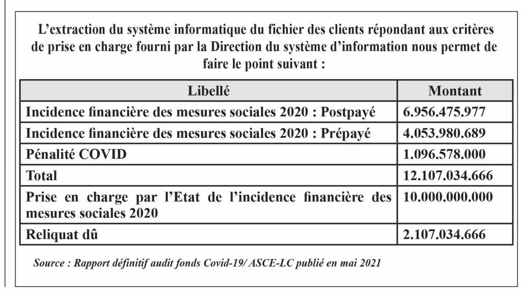 -A l’issue de nos contrôles, nous n’avons pas d’observations à formuler sur le fichier clients de prise en charge fourni par la Direction du système d’information de la SONABEL. Concernant les tranches contractuelles de paiement, nous constatons qu’elles n’ont pas été respectées par l’Etat. Ce qui a impacté négativement la trésorerie de l’entreprise.