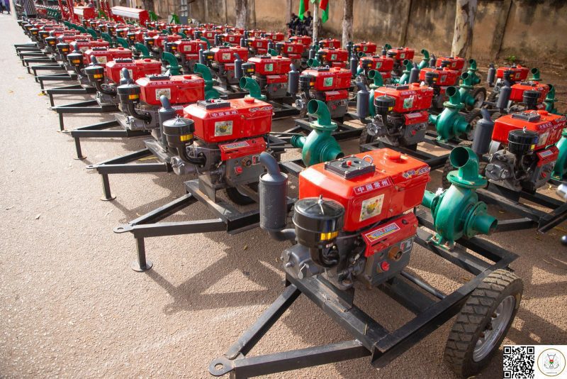 Elle comprend, notamment, 1.033 motos pour les agents de terrain, 485 motopompes, 1.102 motoculteurs, 17 camions, 2 ateliers de forage, 4 moissonneuses batteuses, 935 cages flottantes, 36 véhicules, 608 tracteurs, 150 broyeuses, 10 unités de transformation, 31.851,5 tonnes de produits phytosanitaires, 66.952.895 doses de médicaments vétérinaires, 15.000 tonnes de semences végétales, 70.000 tonnes d’engrais minéraux, 14.631 tonnes de fumure organique, 1.580 tonnes d’aliments de poisson, 11.169 tonnes d’aliments de bétail.