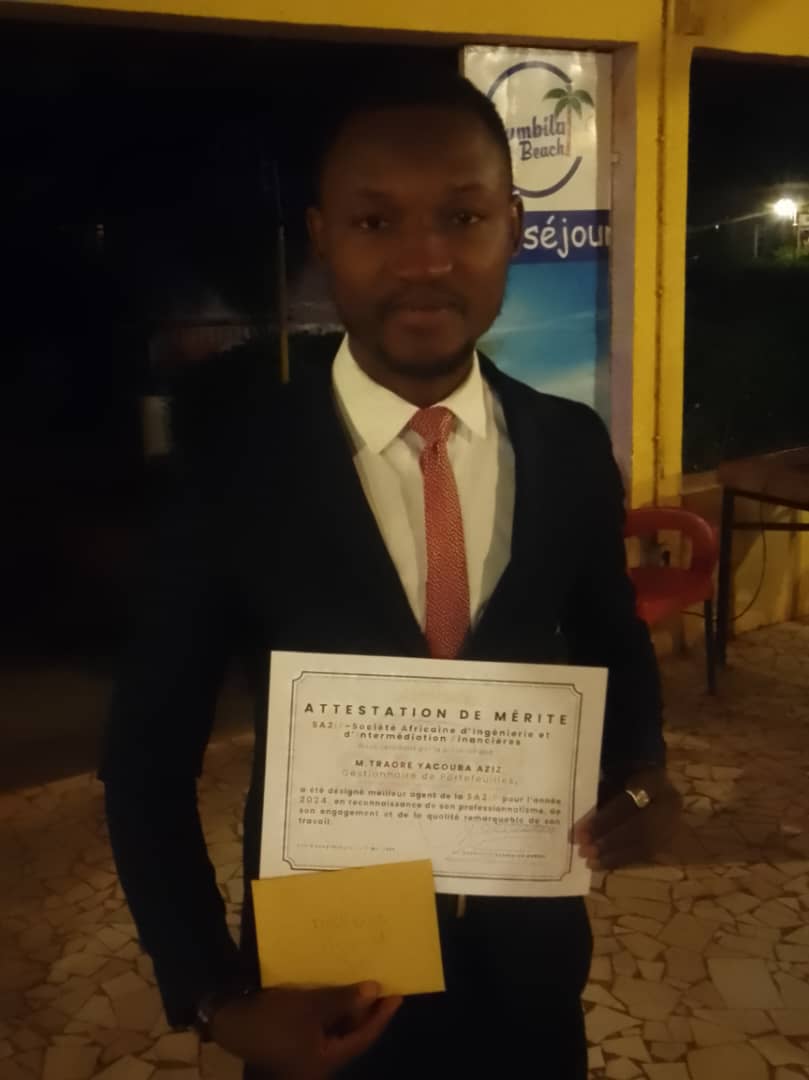 Le département Gestion de portefeuilles a été sacré meilleur département et son responsable, Aziz Traoré, meilleur agent de l’année 2024. Chaque lauréat a reçu une attestation de mérite et une enveloppe financière. « Si j’ai été distingué aujourd’hui en tant que meilleur agent de l’année 2024, c’est grâce à des personnes qui ont su faire leur travail, me permettant ainsi d’accomplir au mieux les missions qui m’ont été confiées », a dit Aziz Traoré.