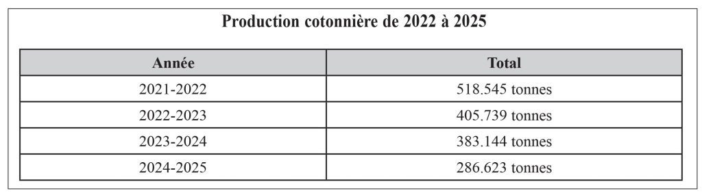 La production cotonnière au Burkina Faso est passée de 518.545 tonnes en 2022 à 286.623 tonnes en 2025. A l’heure du bilan de la campagne cotonnière 2021-2022, l’Association interprofessionnelle du coton du Burkina (AICB) relevait, en mai 2022, la dégradation de la situation sécuritaire dans certaines régions ; les difficultés de mise en place des intrants dans certaines localités ; la perturbation de la mise en place et de l’application des engrais et des insecticides du fait des retards de livraison ; la réticence de certains producteurs à réceptionner la semence préalablement traitée. A ces situations s’étaient ajoutés des désagréments liés aux aléas climatiques, à savoir des poches de sécheresse et des épisodes d’inondation.