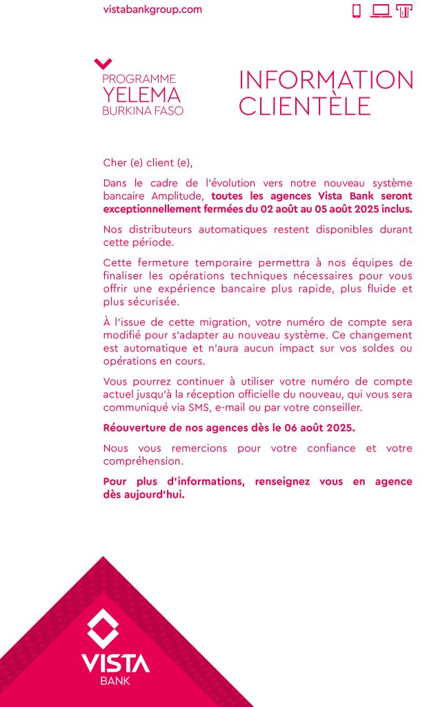 Accueil/A la une/VISTA BANK: Information clientèle A la uneAnnonce VISTA BANK: Information clientèle 31 juillet 20250 Moins d’une minute 31 juillet 20250 Moins d’une minute Facebook X Linkedin Tumblr Pinterest Reddit VKontakte Partager par email Imprimer
