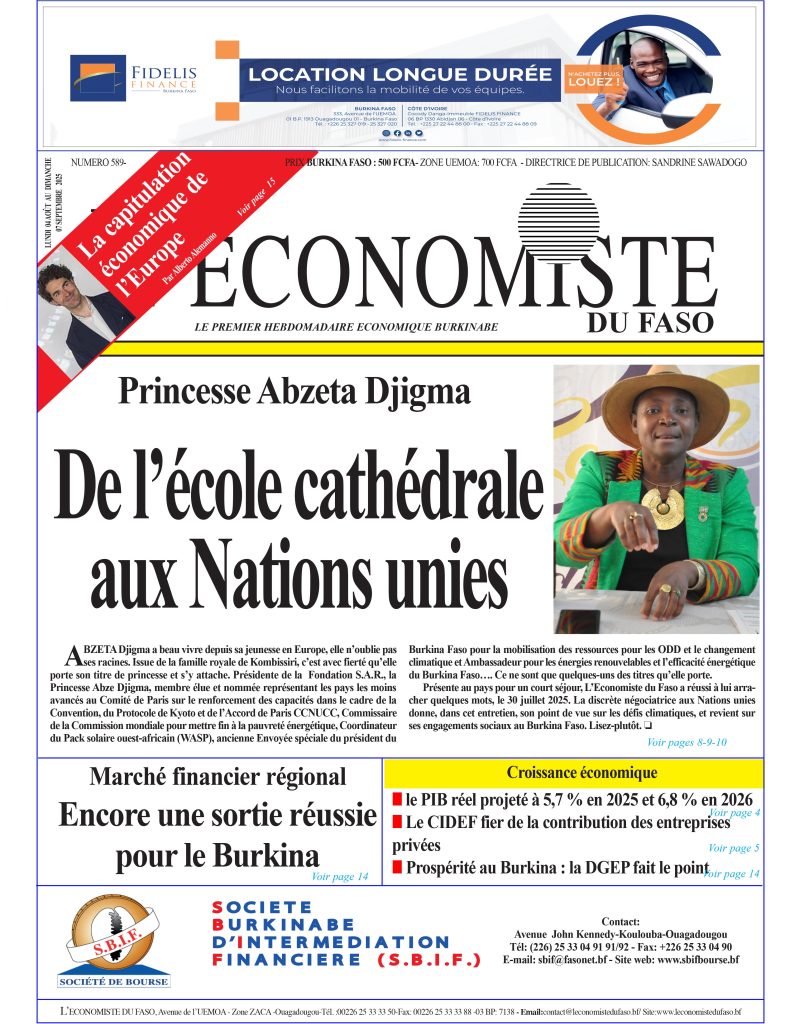 Accueil/A la une/UNE de l’Economiste du Faso N°589 A la uneEconomie UNE de l’Economiste du Faso N°589 4 août 20250 Moins d’une minute 4 août 20250 Moins d’une minute Facebook X Linkedin Tumblr Pinterest Reddit VKontakte Partager par email Imprimer