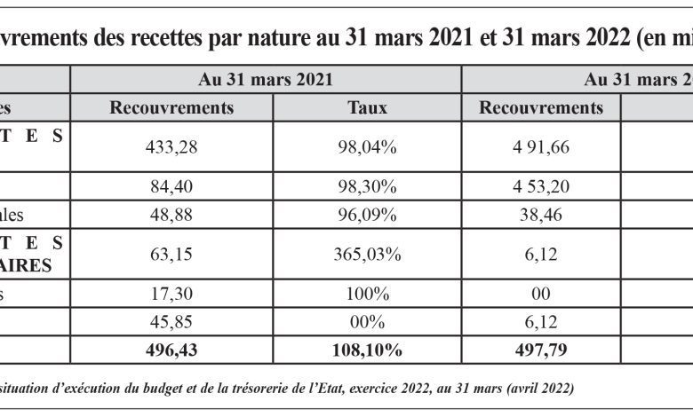 Budget 2022: recouvrement satisfaisant des recettes au 31 mars 2022