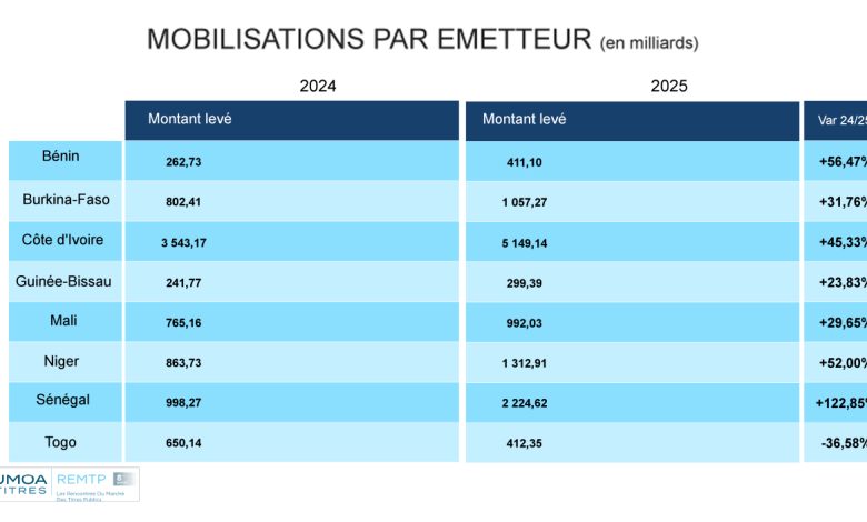 Les résultats des émissions réalisées en 2025 montrent que le Burkina Faso parvient globalement à mobiliser les montants recherchés. Les taux de couverture enregistrés traduisent un intérêt réel des investisseurs, principalement des établissements bancaires de la sous-région. Ainsi, le pays a enregistré une hausse de plus de 30% des montants levés entre 2024 et 2025. Ainsi, après 802,41 milliards FCFA levés en 2024, le pays a réussi à lever 1.057,27 milliards une année après.