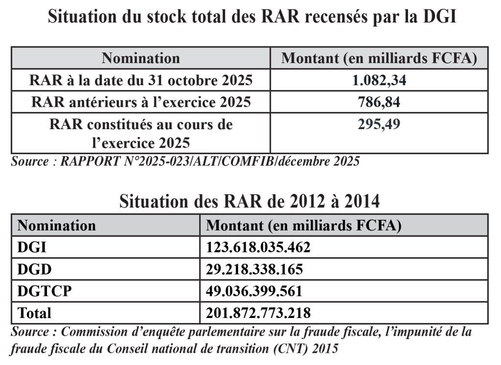 Restes à recouvrer (RAR) : plus de 1.000 milliards FCFA « dehors »
