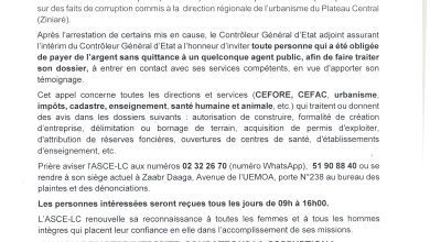 AUTORITE SUPERIEURE DE CONTROLE D’ETAT ET DE LUTTE CONTRE LA CORRUPTION BURKINA FASO Unité-Progrès-Justice CABINET N°2023-02_ -/ASCE-LC/CAB Ouagadougou, le 17…