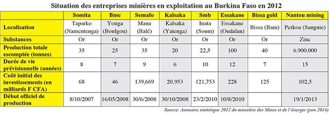 Le secteur minier burkinabè se caractérise par la faible teneur des gisements et la durée relativement courte de l’exploitation du minerai. Le salut viendra des extensions engagées par les mines en exploitation et la construction de nouvelles mines. Cependant, depuis l’adoption du code minier ivoirien, les sociétés minières, à l’image d’Amara (Kalsaka), sont attirées par la Côte d’Ivoire. Ainsi d’autres sociétés sont sur le point d’emboîter le pas à Amara. Nous y reviendrons.
