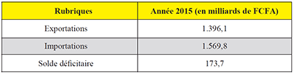 Balance commerciale: un solde déficitaire de 173,7 milliards de FCFA en 2015