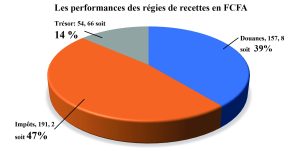 Toutes ces recettes ont été recouvrées par les régies de recettes, à savoir les Impôts, les Douanes et le Trésor public. Au 31 mars 2020, la Direction générale des Impôts a mobilisé 191,20 milliards FCFA, soit un taux de réalisation de 19,78 %, contre un taux trimestriel attendu de 21,18 %. Le gap pourrait s’expliquer par la crise sanitaire qui prévaut depuis ce mois de mars. En effet, rien que pour le mois de mars 2020, le manque à gagner dans les réalisations de la DGI a été chiffré à 13,71 milliards FCFA. La DGI a mobilisé 47,36% des recettes propres. La Direction générale des Douanes a recouvré 157,80 milliards F CFA, soit un taux de recouvrement de 21,02%. Les Douanes ont recouvré 39,09% des recettes propres. Le Trésor public a mobilisé 54,66 milliards FCFA, soit un taux d’exécution de 93,92%. Cette performance se justifie principalement par le recouvrement de la tranche 2020 (24 milliards FCFA) des droits de licence 4G de la société Orange Burkina, qui avait été prévue au mois de janvier 2020. Le Trésor a mobilisé 13,54% des recettes propres. o