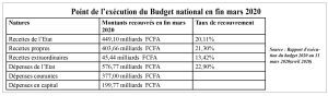 Janvier- mars 2020: 20,11% des recettes de l’Etat mobilisé