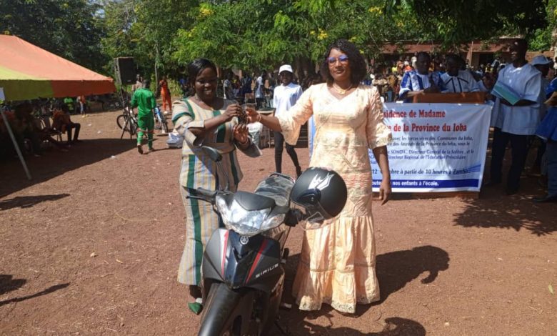 Bonosokoum Arsène Ghislain Somda, Directeur général de la Société des fibres textiles du Burkina Faso (SOFITEX), et Jean Joseph Somda, Directeur régional de l’Éducation préscolaire, primaire et non formelle du Sud-Ouest, parrains de cette édition, ont reconnu la pertinence de la Journée des lauréats du Ioba. « Parrainer une cérémonie de récompense des meilleurs enseignants et des meilleurs élèves, c’est en quelque sorte investir dans l’éducation, et qui investit dans l’éducation investit pour l’avenir, a indiqué le coparrain, Jean Joseph Somda. Les parrains ont invité les encadreurs à instaurer des compétitions de création de bonnes pratiques des technologies de l’information et de la communication (Tic) par classe et par établissement, pour davantage d’émulation saine. “Faites-les rêver et ces TIC devront les aider à réaliser ces rêves. La jeunesse doit rêver pour oser inventer”, ont-ils insisté. Le Haut-commissaire de la province du Ioba n’a pas manqué d’encourager les promoteurs. Bernadette Adenyo/Sermé a saisi cette occasion pour saluer et encourager cette initiative combien louable et salutaire qui continue de susciter chez les enfants, la quête permanente de l’excellence. Pour elle, la Journée des lauréats est aussi une saine émulation dans un contexte marqué, entre autres, par l’abandon des classes induit par l’orpaillage, les grossesses et les mariages précoces, et surtout par le contexte de défi sécuritaire qui ébranle le système éducatif à l’échelle nationale. Pour récompenser les lauréats, le promoteur et les forces vives du Ioba ont mobilisé une mobylette, 11 vélos, des kits scolaires et des bourses d’études aux trois meilleures filles au Baccalauréat par mois, pendant 9 mois. La première des filles au CEP session 2024 de la province du Ioba, Estella Marie Somé, a reçu un vélo et des kits scolaires. “Je suis contente et j’encourage les autres élèves à bien travailler à l’école et j’espère revenir ici encore quand j’aurai eu mon BEPC”, a souhaité la lauréate. Pour avoir été la meilleure enseignante de la province du Ioba, Larissa Combasséré est repartie avec une mobylette et un kit enseignant. “Je dis merci au promoteur et je souhaite qu’il continue de galvaniser les enseignants et les élèves à se surpasser.