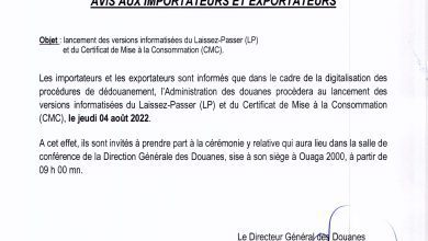 - Avis N°101/DCBR/2025 – Rappel, 29 mai 2025, jour férié ;